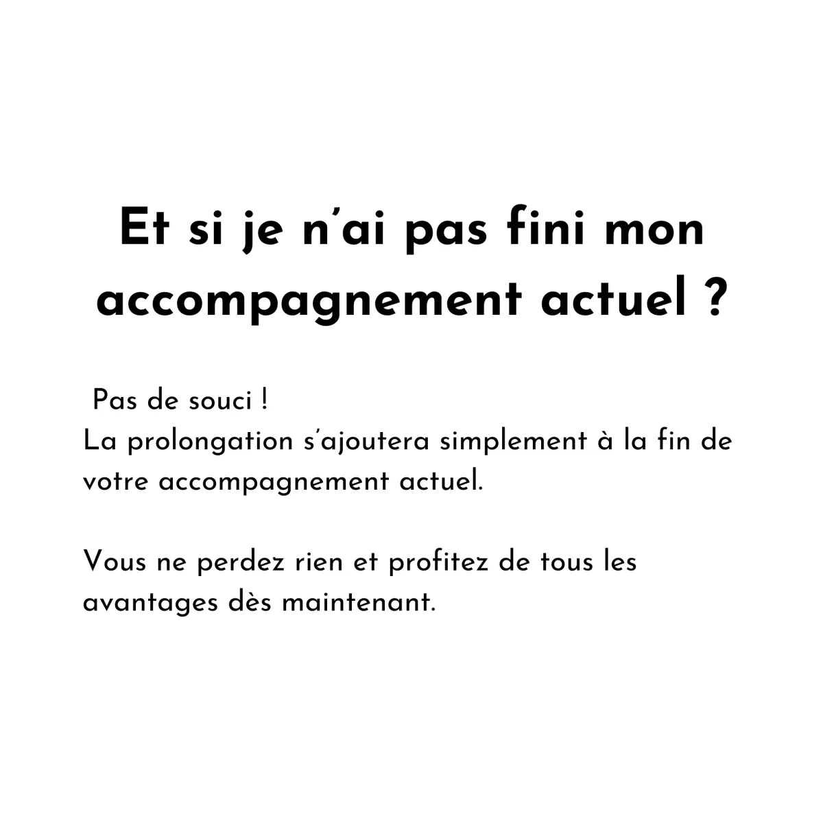 Étape 3 : Nous ajoutons la prolongation à la fin de votre accompagnement actuel, sans interruption.